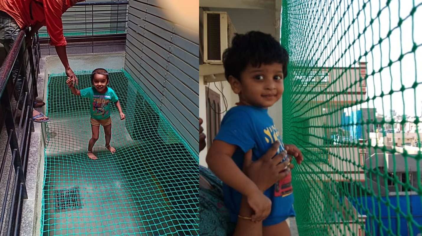 Balcony safety nets are installed to give safety and well being at home protecting children, adults, pets and objects that may fall from height, terraces, balcony, window, doors, stairs, pools etc. Balcony nets are helps us to protect our properties as well as people.