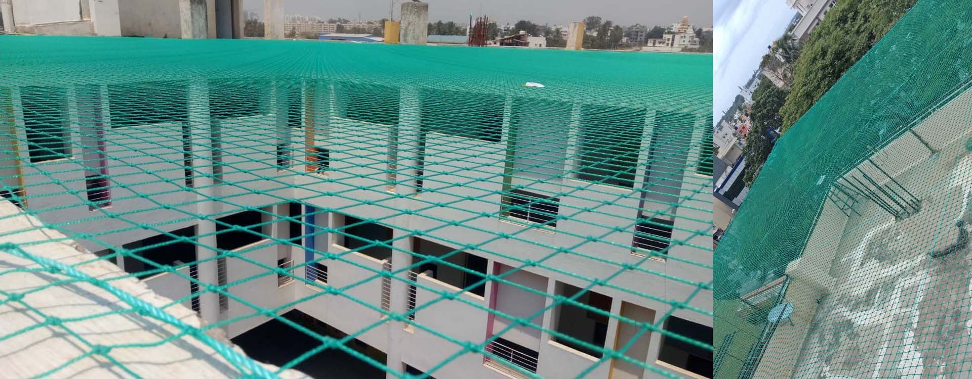 We are the skilled experts in fixing Safety nets for Balcony Safety Nets, Pigeon Safety Nets, Anti Bird Nets, Pigeon Nets for Balconies, Cricket Net Practice, Children Safety Nets, Construction Safety Nets, Duct Area Safety Nets, Building Safety Nets, Industrial Safety Nets, Swimming Pool Safety Nets Stairway Safety nets, Monkey Safety Nets, Terrace Top Nets, Glass Safety Nets, Car Parking Safety Nets, Coconut Tree Nets, All types of Safety Nets, HDPE Nets - Nylon Nets.